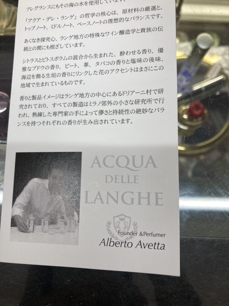 新しいブランド「アクア・デレ・ランゲ」のお取り扱いを始めました。ユニセックスの香りです。